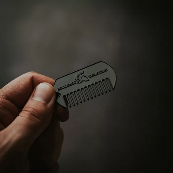 The Golden Spartan češalj za brkove je ručno napravljen od kvalitetnog čelika. Veoma trajan i gotovo neuništiv. Njegova veličina ga čini idealnim za brkonje u pokretu (5cm x2.8cm).