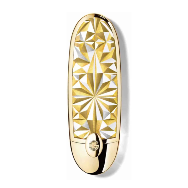 Guerlain Rouge G je ponovo osmišljen u blistavom zlatno obojenom ukrasu koji otkriva svoje tajno dvostruko ogledalo. Težina ove futrole za ruž za usne je smanjena za 19%, a njen proizvodni proces je optimizovan, što omogućava smanjenje emisije CO2 za 30% u poređenju sa prethodnom generacijom kutijica za Rouge G¹.