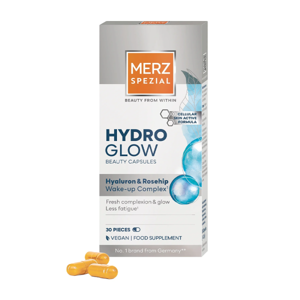 Merz Spezial Hydro Glow Beauty kapsule sadrže pažljivo odabranu kombinaciju hranljivih sastojaka koji doprinose zdravom i blistavom izgledu kože. Vitamin C štiti ćelije od oksidativnog stresa, u sinergiji s poznatim beauty sastojcima – hijaluronskom kiselinom i ekstraktom šipka.