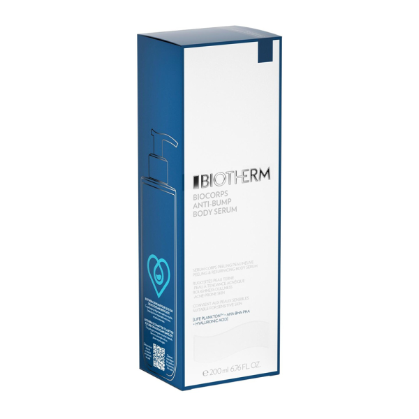 Biotherm Biocorps Anti-Bump Body Serum pruža dejstvo hemijskog pilinga za negu kože tela za ciljanje izbočina, hrapavosti i kože sklone KP, ostavljajući kožu glatkijom. Formulisan sa 5.25% AHA, BHA i PHA, koji ciljaju na hrapavost i Keratosis Pilaris, serum sadrži hijaluronsku kiselinu i Life Plankton™ sastojak, koji hidriraju i obnavljaju kožu tela.