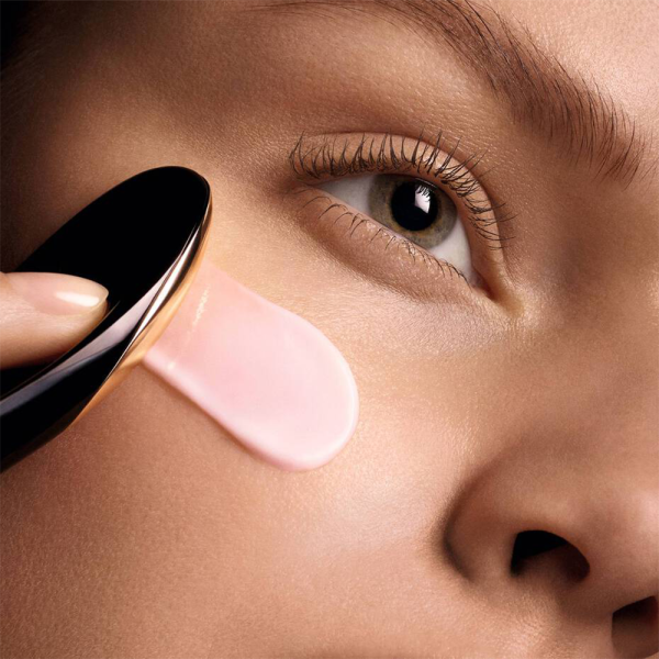 Nanesite kremu čistim prstima preko čela, obraza, brade i niz vrat. Koristite Lancôme Absolue L'Extrait skulptorsku špatulu za lice kako biste obezbedili pravilne polukružne pokrete nagore. Klizite po koži počevši od brade do linije vilice, gornje usne do ušiju i bočnih strana nosa. Završite vrlo nežnim potezima od ispod očiju do slepoočnica.