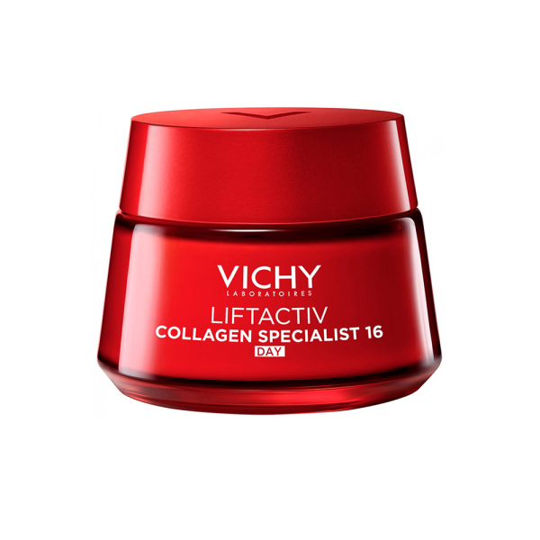 Vichy Liftactiv Collagen Specialist 16 dnevna krema za lice koriguje 16 znakova starenja kože³ kao sto su manje bora, manje tankih linija, poboljšana čvrstoća, volumen, manja opuštenost, zaglađenost, poboljšana tekstura kože, tonus, gustoća kože, osnažena kožna barijera, poboljšano obnavljanje kože, blistavost, mekoća, elastičnost, hidratacija, ujednačenost tena.