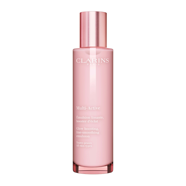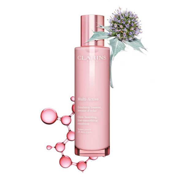Danju i noću, koža lica treba da održi nivo energije i otpornosti da bi bila u toku sa stresom intenzivnog načina života. Clarins Multi-Active Glow Boosting emulzija pojačava blistavost kože i ima efekat matiranja i zaglađivanja. Ova bogata, lagana i sveža emulzija, sa 93% prirodnih sastojaka, sadrži inovativnu Skin Charger Complex tehnologiju s niacinamidom i ekstraktom morske božikovine koji pomaže u smanjenju prvih vidljivih znakova starenja. Barijerna funkcija kože lica je ojačana, njen sjaj osvežen, a mladost očuvana. Koža izgleda zaglađena, blistava i savršeno hidrirana. Tekstura kože lica je prefinjena.