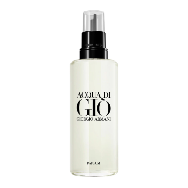 Za evoluciju Acqua Di Giò, Giorgio Armani otkriva modernu novu bocu, sa sada redizajniranim izgledom. Napravljena stepenastim, mat crnim lakom, bočica oličava intenzitet mirisa i osećaj uzbuđenja. Acqua Di Giò Parfum bočica je predstavljena sa magnetnim crnim poklopcem, sa utisnutim monogramom Giorgio Armani, a ime Giorgio Armani je sada postavljeno i na dnu bočice. Ovaj proizvod predstavlja dopunu u vidu flašice sa Acqua Di Giò parfemom namenjenom punjenju postojeće parfemske flašice sa sprejem (ovaj proizvod nema mogućnost nanošenja sprejem, već služi kao dopunski parfem za već postojeću praznu flašicu Acqua Di Giò parfema).