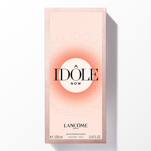 Inspirisana svetlošću nove zore, bočica Lancôme Idôle Now obojena je vatrenim izlaskom sunca koji raste u intenzitetu od vrha do dna. Ovaj izlazak sunca predstavlja novu priliku da budemo ujedinjeni i da zajedno gradimo bolju budućnost. Idôle Now je miris bez izvinjenja koji obuhvata snagu generacije čije je vreme za stvaranje promena sada ili nikad. Idôle su pioniri i zajedno stvaramo novi način. Spoljno pakovanje je FSC™ MIX (Forest Stewardship Council) sertifikovano i njegova reljefna nova mantra služi kao podsetnik da uvek budete smeli u onome u šta verujete.