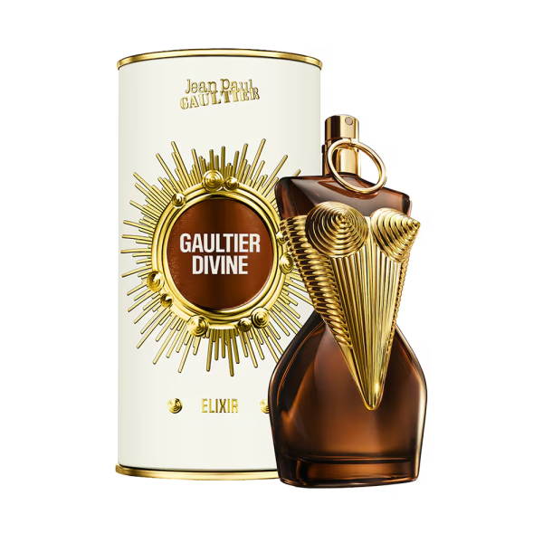 Zlatno obojeni korset poput fasetiranog dragulja i zadivljujući intenzitet ćilibara predstavlja bočicu u kojoj se nalazi Jean Paul Gaultier Divine Elixir parfem. Unutar bočice utisnute zlatno obojenim suncem, svaki element ističe jedinstvenost naše boginje. Gaultier Divine Elixir privlači svetlost novim odsjajima svoje jedinstvenog pakovanja. Epatažna silueta privlači pogled, baš kao i ova božanska žena.