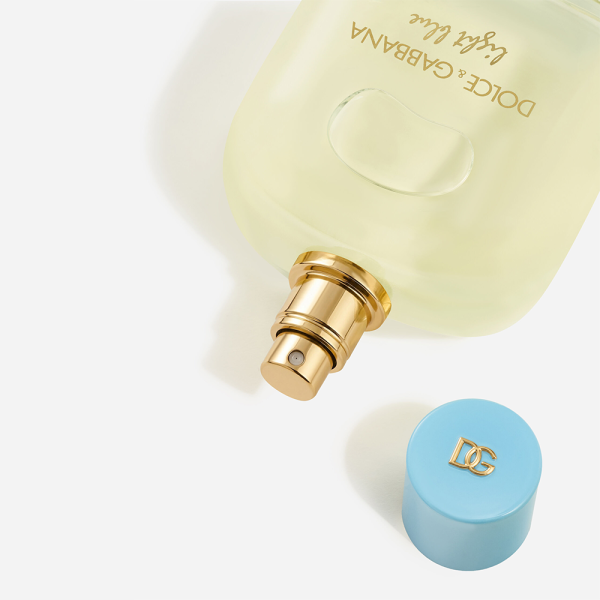 Prozirna staklena bočica otkriva svetle i zlatno obojene nijanse samog mirisa, dok su vijugave linije ukrašene elegantnim zlatno obojenim detaljima. Plavi emajlirani poklopac, inspirisan keramikom sa obale Amalfija, upotpunjen je čuvenim DG monogramom, sada u svojoj zlatno obojenoj verziji.