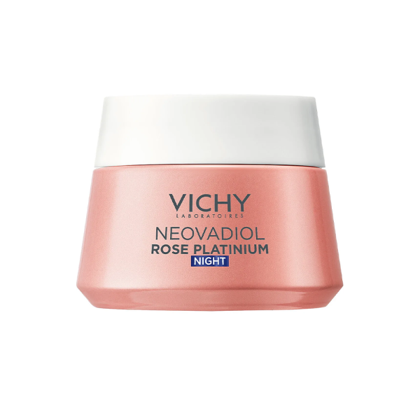 Kalcijum, pčelinji vosak i sjajni ružičasti pigmenti sadržani u hranljivoj i osvežavajućoj noćnoj kremi Vichy Neovadiol Rose Platinium Night, doprinose da koža lica izgleda osnaženo i revitalizovano. Dokazana efikasnost. Ten trenutno izgleda sjajnije, a koža lica i vrata osveženo i čvršće nakon jedne upotrebe. Uz redovnu upotrebu nakon buđenja imate osećaj da su bore od spavanja smanjene, koža izgleda snažnije sa zdravim i ružičastim sjajem. Noćna krema za negu kože lica i vrata Vichy Neovadiol Rose Platinium Night namenjena je zreloj koži, bez sjaja.