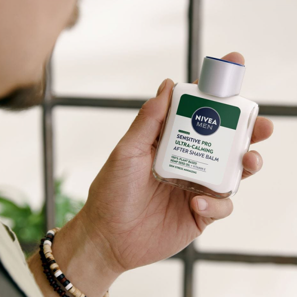 Nivea Men Sensitive Pro Ultra-Calming balzam za negu posle brijanja trenutno ublažava simptome stresa na koži, kao što su suvoća, iritacije i linije.