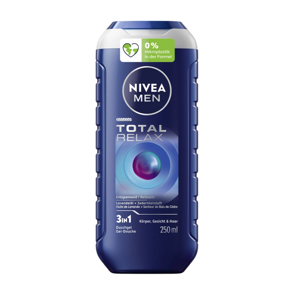 Doživite dubinsko opuštanje i čišćenje uz Nivea Men Total Relax gel za tuširanje. Ulje lavande i miris čempresa čine ovu biorazgradivu formulaciju savršenom za telo i lice. pH-neutralna formulacija. Hidratacija na biljnoj bazi. Formulacija bez mikroplastike. 99% biorazgradiva formulacija.