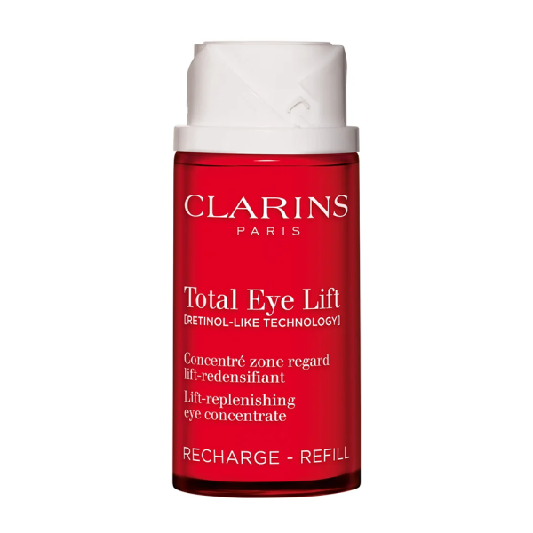 Clarins Total Eye Lift je sveobuhvatna, anti-age krema za predeo oko očiju formulisana sa 94% sastojaka prirodnog porekla, uključujući crvenu janiju (biotehnološki ekstrakt), kofein i tetrapeptid za vidljivo uklanjanje otečenosti, podizanje, učvršćivanje i zaglađivanje linija i bora oko očiju. Njena umirujuća tekstura balzama formira nevidljivu mrežu za trenutno podignut izgled.