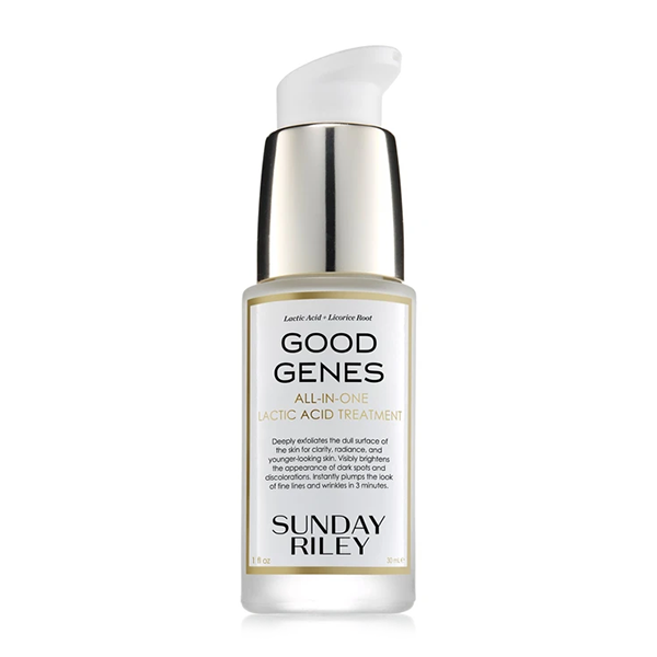 Sunday Riley Good Genes je ciljani tretman mlečnim kiselinama sa više zadataka i to da brzo ljušti mrtvi ćelije i pojačava mladalački sjaj kože, dok ujedno vidno smanjuje izgled finih linija i bora, kao i tamnih mrlja. Mlečna kiselina prečišćenog stepena i visokog potencijala ljušti uporne mrtve ćelije kože lica koje začepljuju pore kako bi odmah otkrila glatku i bistru kožu.