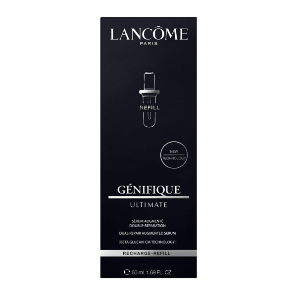 Počevši od 25. godine, sposobnost kože da se popravi svake godine se smanjuje, a koža koja ne može da se popravi je koža koja brže stari. Nastao iz 27 godina istraživanja u nauci o popravljanju, Lancôme Génifique Ultimate serum nudi dvostruko dejstvo popravljanja obogaćeno novim ključnim sastojkom Beta Glucan-CM koji pomaže u popravljanju kožne barijere i pomaže u popravljanju ranih znakova starenja kože lica. Svaka kapaljka sadrži 90 triliona beta glukana-CM. Génifique Ultimate serum ima preciznu kapaljku za savršenu dozu i nanošenje.