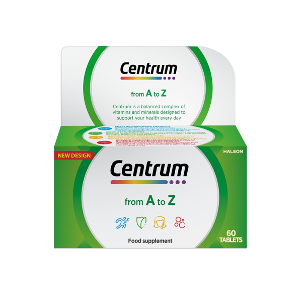 Centrum od A do Ž je kompleks multivitamina za žene i muškarce s gvožđem i antioksidansima za imunitet i zaštitu od stresnih uticaja životne sredine. Centrum je multivitaminski multimineralni dodatak ishrani koji u potpunosti pokriva preporučene dnevne doze vitamina C, D, A, E i B. Sadrži 100% NRV vitamina D i 125% NRV vitamina C, koji doprinosi normalnoj funkciji imunog sistema. B vitamini (B1, B2, B6, B12) i magnezijum doprinose održavanju normalnog energetskog metabolizma. Vitamin C, Vitamin E, cink i selen učestvuju u zaštiti ćelija od oksidativnog stresa.